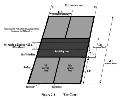 3) Kahe põrke reegel. Pärast palli servimist peab pall põrkama mõlemal poolel ennem lendpalli löömist. Lendpalli keeluala (NVZ). Piirkond, mis ulatub 2,13 m kaugusele mõlemal pool võrku, mille piires ei tohi mängija lüüa palli ilma selle esmalt põrgatamata.